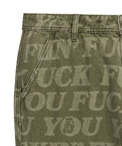 All Over Print Fuckin Fuck Washed Denim Pants Order A Size Up! YKK Zipper Fly 4 Pockets Button Waist Sizing Chart