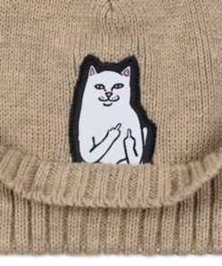 100% Acrylic Lord Nermal Beanie Embroidered Lord Nermal Flipping Off Inside Fold