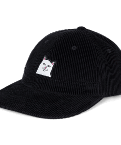 Lord Nermal Corduroy Hat Strap Back Closure 6 Panel Cap Embroidered Lord Nermal On Front Flipping Off Under Fold