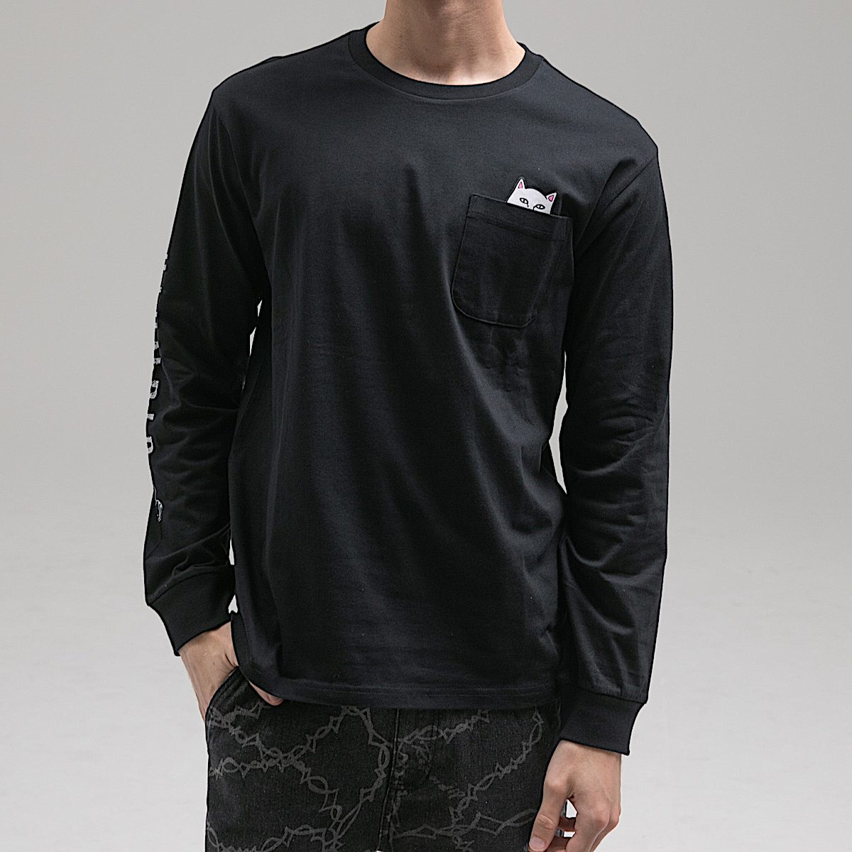 OG Ripndip heads know No care in the world 100% Cotton L/S Pocket Tee Lord Nermal Inside Pocket Screen Printed Front and Sleeve Graphic Sizing Chart