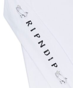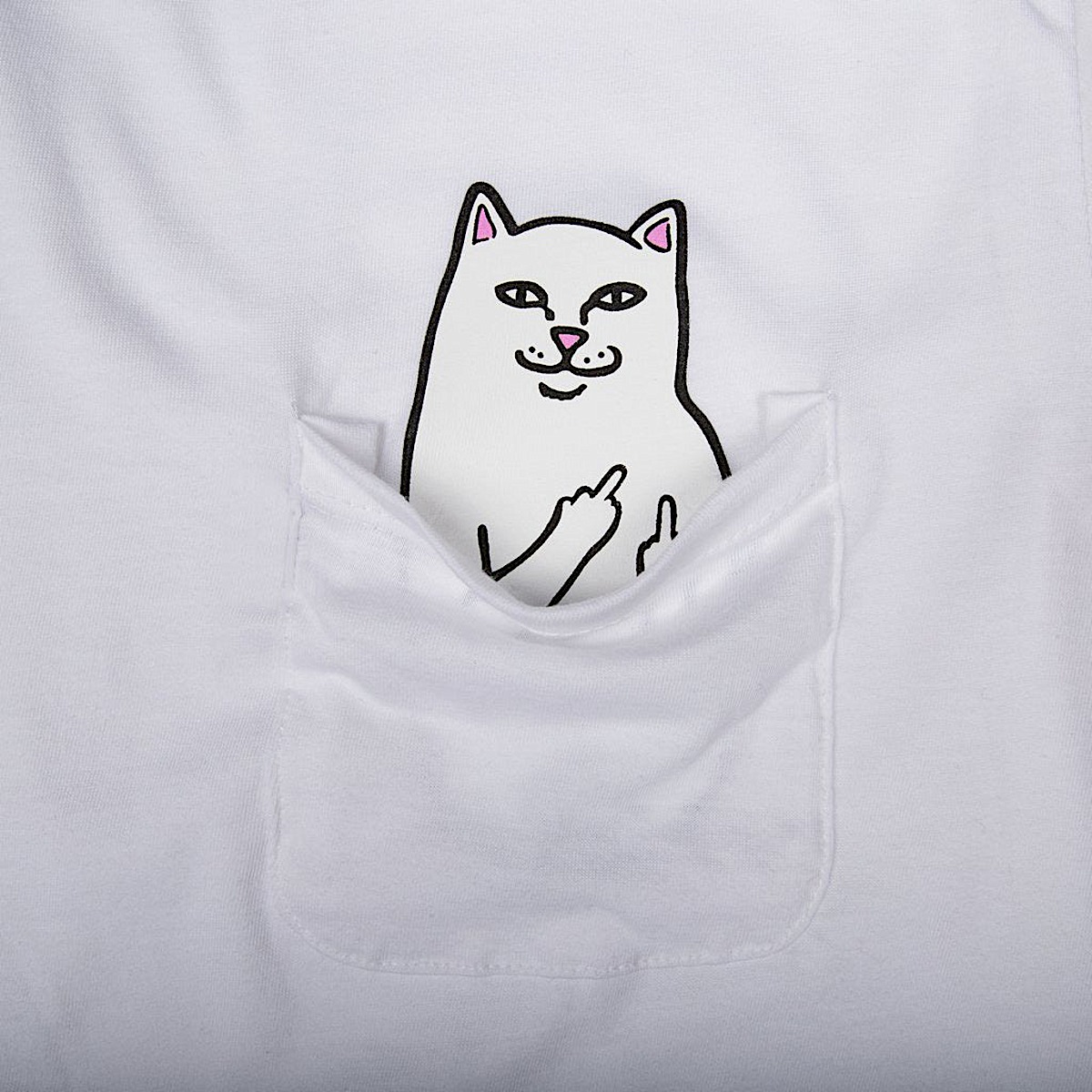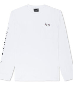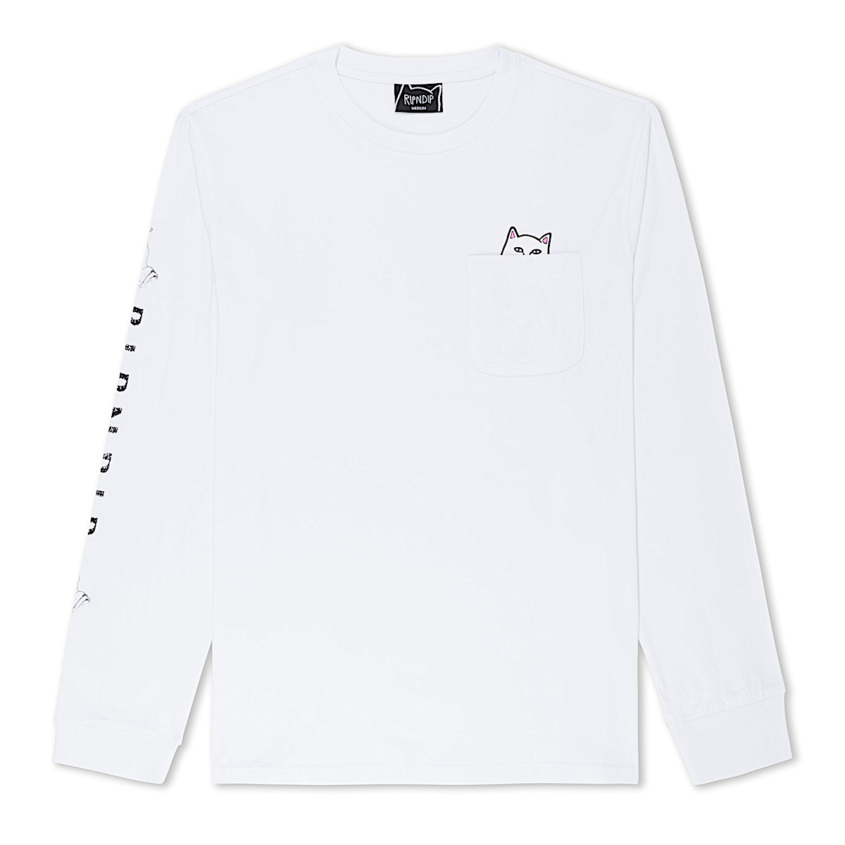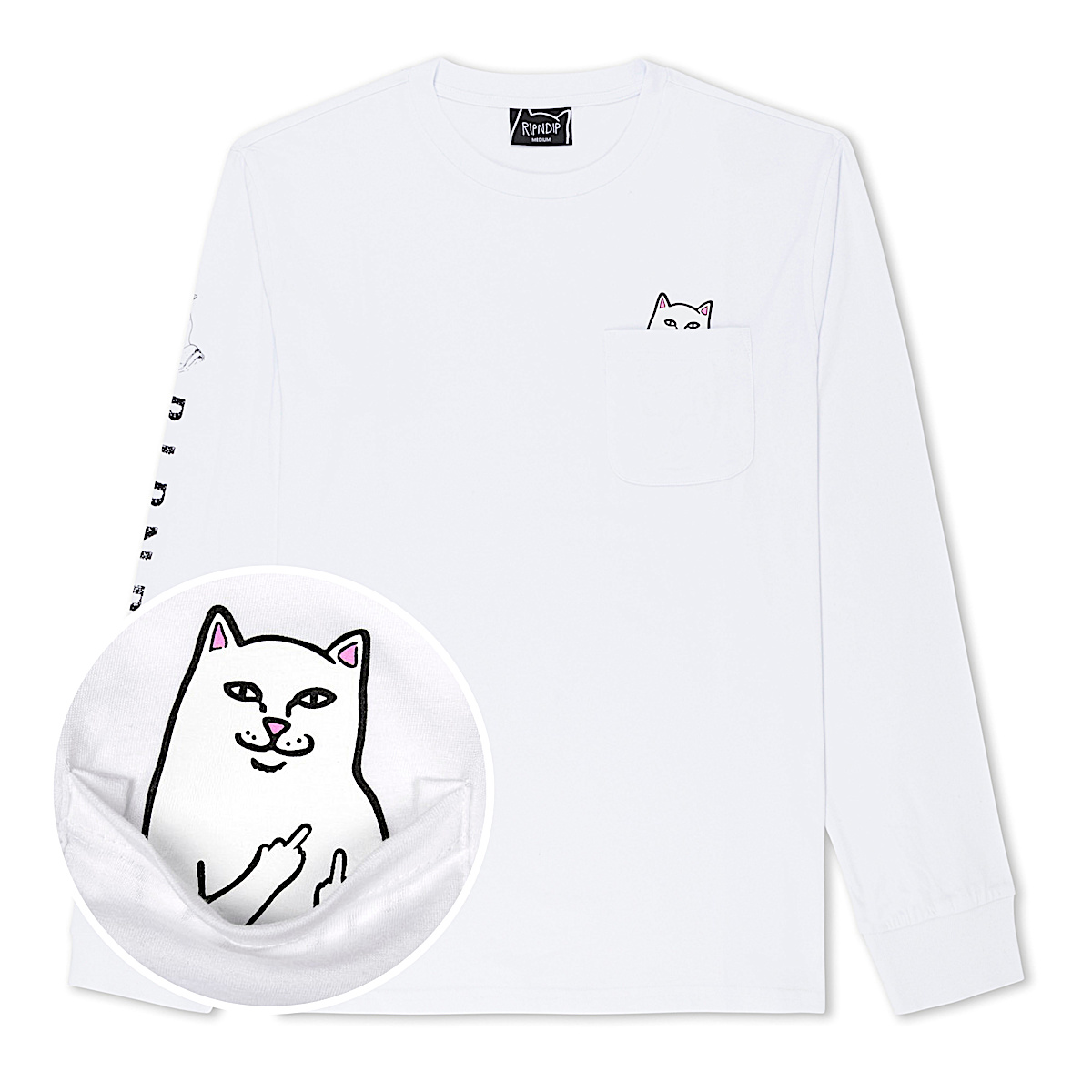 World Famous Ripndip Lord Nermal Pocket Long Sleeve Pull the Pocket Down to see Lord Nermal Flipping You Off Cut and Sewn tee shirt made in the USA Ripndip print on right sleeve 100% Cotton