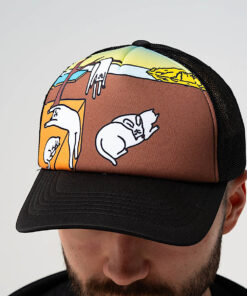 Adjustable Skull Face Trucker Hat Plastic Snapback Closure Nermali Graphic On Front Embroidered Logo On Back