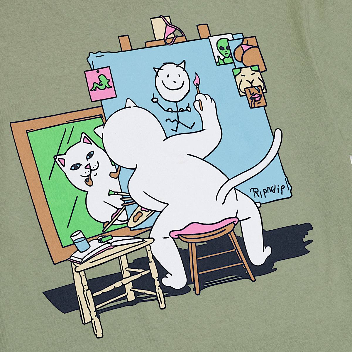 100% Cotton Nerman Rockwell Ripndip Tee 240 GSM Ripndip Printed Neck Label Screen Printed Nerman Rockwell Graphics On Front And Back