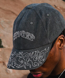 Pretty Flacko Distressed Dad Hat Metal Clasp Strapback Closure 6 Panel Dad Cap Chain Stitch Logo on Front And Bill