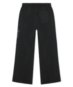 500 GSM 100% Cotton Custom Made Baggy Sweatpants Drawstring Waist Cut Hem At Bottom Screen Printed Artwork On Both Legs Zipper Close Side Pockets One Back Pocket