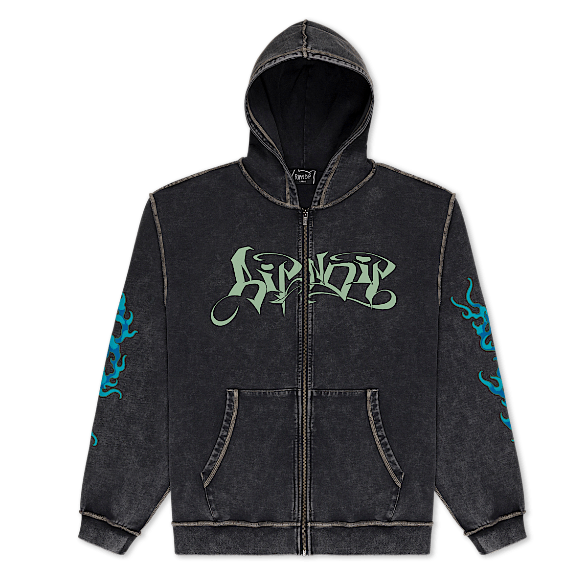 100% Cotton Zip Up Hoodie 460 GSM Squabble Up Ripndip Logo On Front Large Squabble Up Graphic Printed On Back Flaming Sleeves