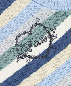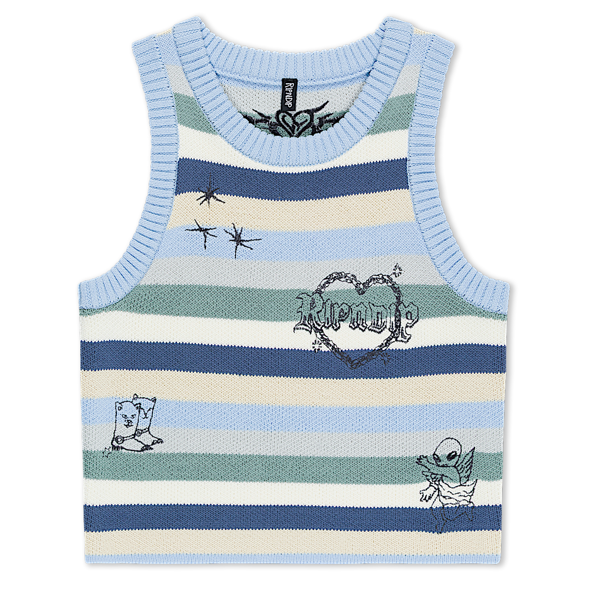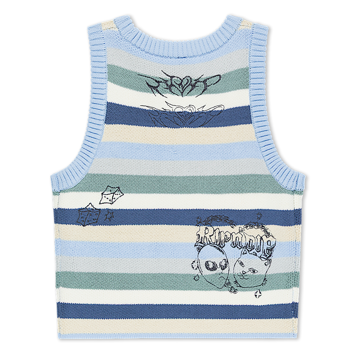 43% Viscos 57% Nylon Knit Crop Top Striped Cropped Knit Top Westside Embroidered Graphics All Over