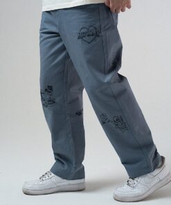 Westside 100% Cotton Wide Fit Pants Embroidered Westside Graphics All Over YKK Zipper Fly 4 Pockets Button Waist