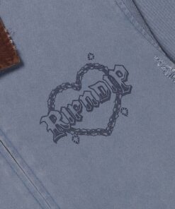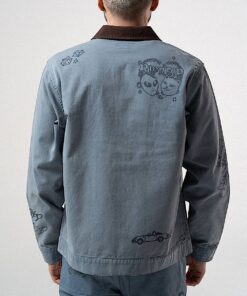 Westside Zip Up Work Jacket Custom Distressed Embellishments Westside Graphic Embroidered All Over 100% Woven Cotton Zip Up Jacket