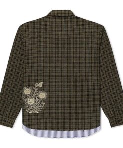Where The Flowers Bloom Flannel Jacket 80% Polyester 20% Wool Button Up Flannel Embroidered Where The Flowers Bloom Graphic On Back Embroidered Ripndip Logo On Chest Striped Raw Edge Cotton Liner