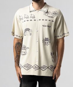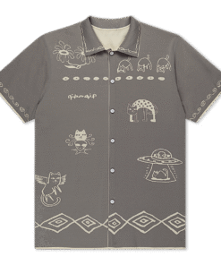 65% Viscos 35% Poly Knitted Button Up All Over Blonded Graphic 100% Reversible