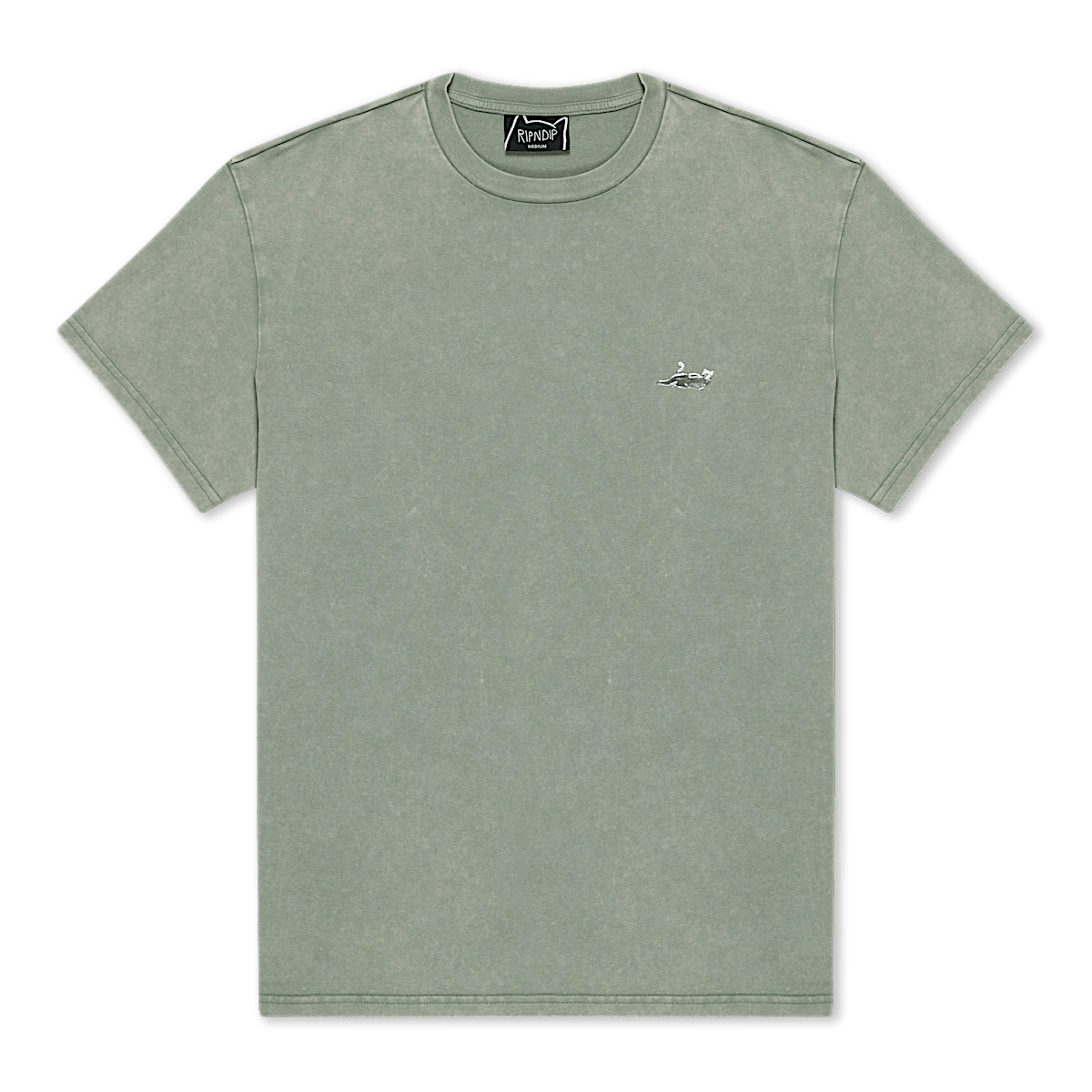 New Ripndip Basics Short Sleeve Tee In Sage Catstanza Logo On Breast Relaxed Fit Made For Comfort 100% Cotton 180 GSM Model Is 6'0" 175 lbs Wearing Size Large