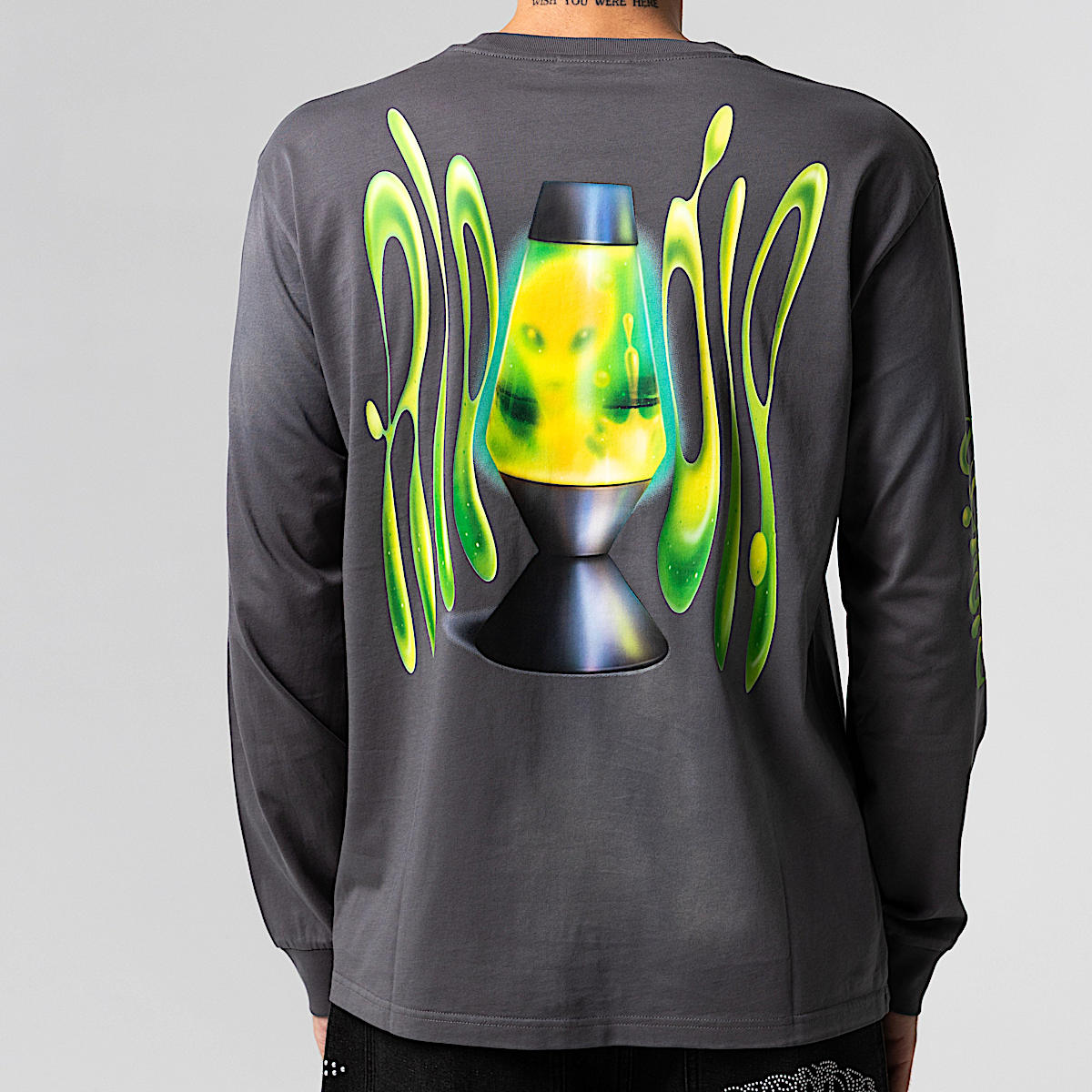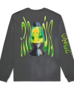 100% Cotton Washed Long Sleeve Tee 180 GSM Screen Printed Lava Lamp Up Graphic On Front, Back And Sleeves