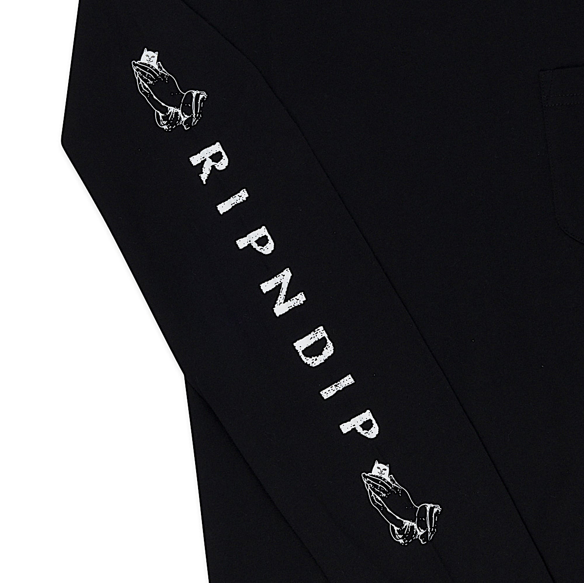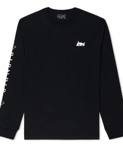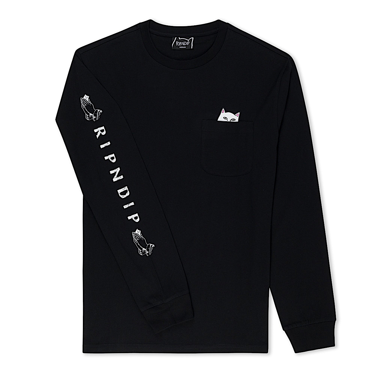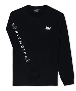 OG Ripndip heads know No care in the world 100% Cotton L/S Pocket Tee Lord Nermal Inside Pocket Screen Printed Front and Sleeve Graphic Sizing Chart