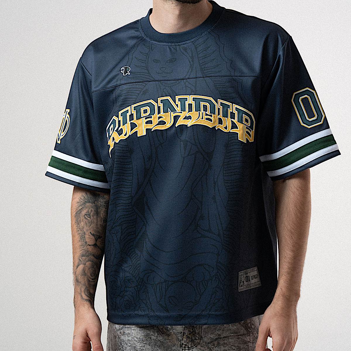 100% Polyester Football Jersey Ripndip Mother Nerm Jersey Embroidered Logos & Custom Patches