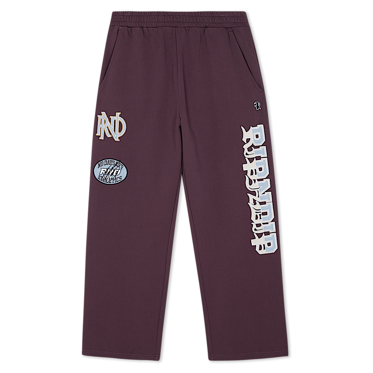 100% Cotton 400 GSM Sweatpants 3 Pockets, Drawstring Waist Custom No Days Off Patches No Days Off Graphic Embroidered Leg Woven Ripndip Label On Back Pocket