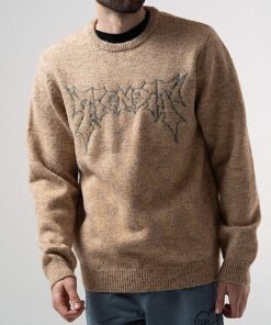 Super Soft Ripndip Sweater In Sand Noid Logo Outlined On Front 10% Wool 22% Nylon 36% Polyester 30% Acrylic 2% Spandex