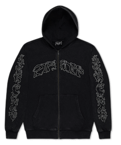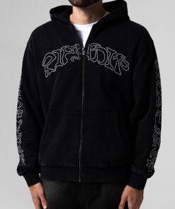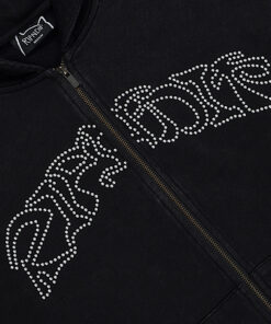 100% Cotton 400 GSM Zip Up Hoodie Studded Graphic On Sleeves Studded Ripndip Pretty Flacko Logo On Front