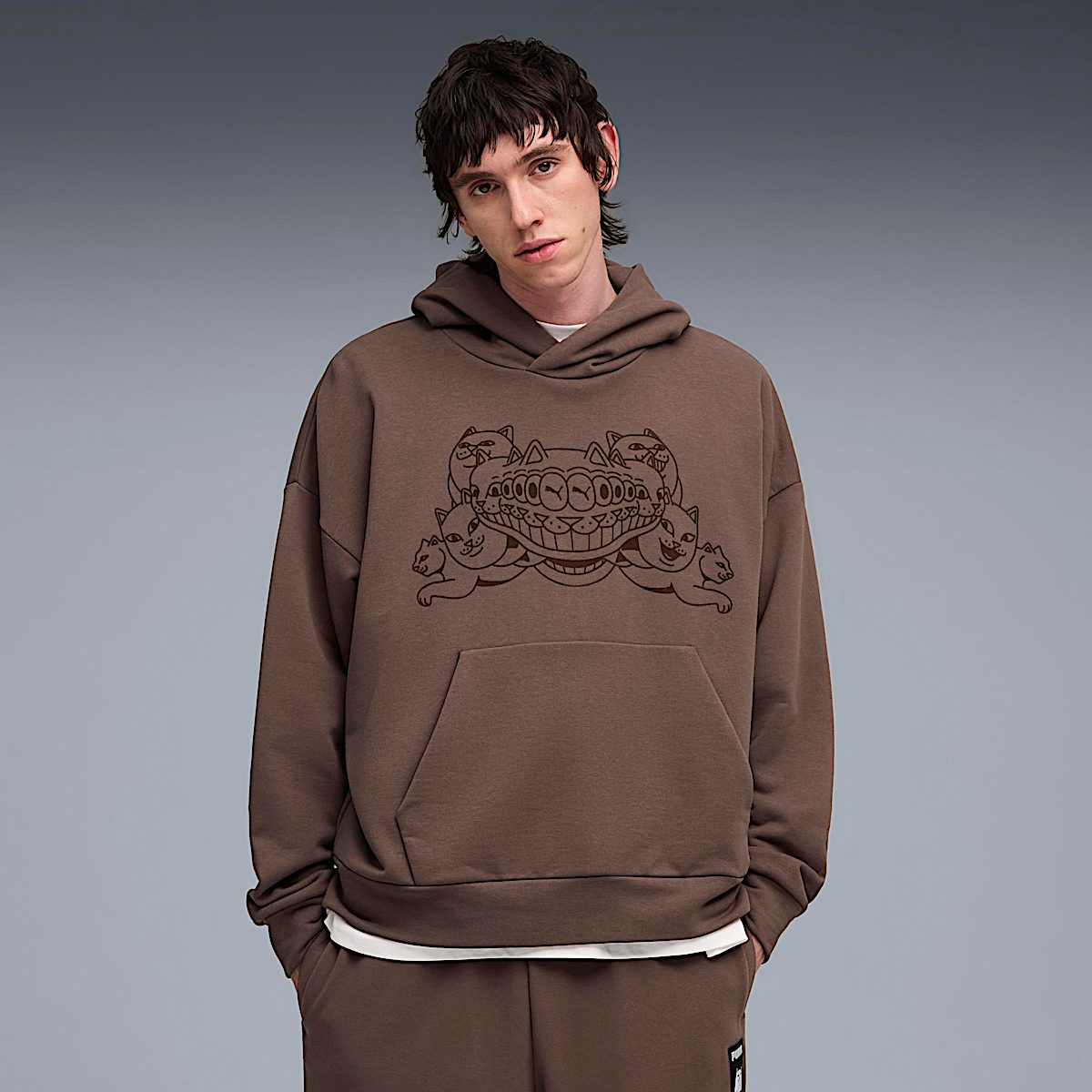 Ripndip x PUMA Official Boxy Graphic Hoodie NerMorph Felt Graphic On Front Catformation Artwork Under Hood Woven Ripndip X Puma Label Boxy Fit 100% Cotton French Terry – 330 GSM
