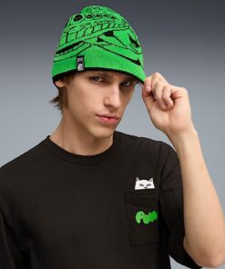 PUMA x RIPNDIP Reversable Skull Beanie (PUMA Black-Fluro Green Pes)