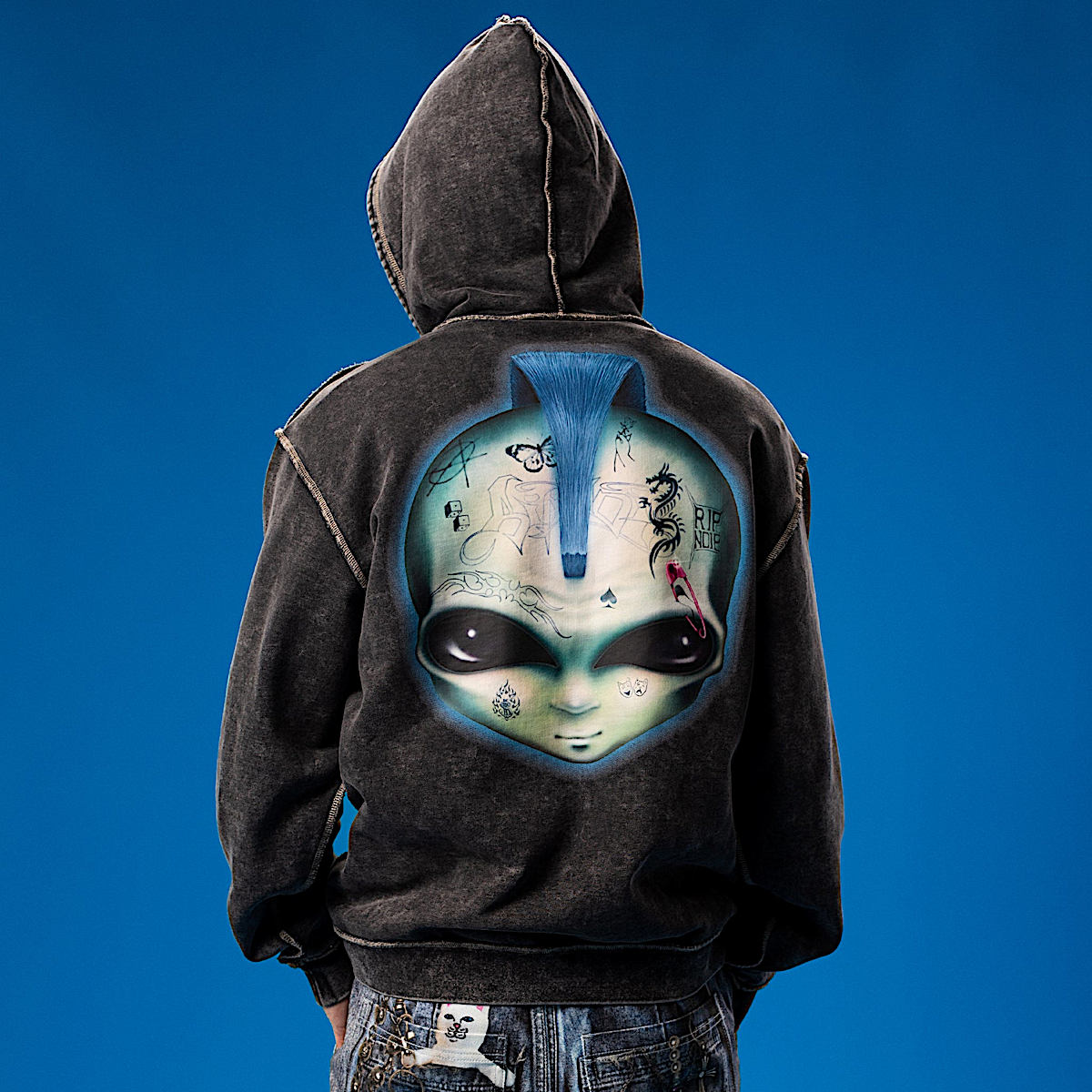 100% Cotton Zip Up Hoodie 460 GSM Squabble Up Ripndip Logo On Front Large Squabble Up Graphic Printed On Back Flaming Sleeves