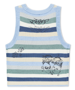 43% Viscos 57% Nylon Knit Crop Top Striped Cropped Knit Top Westside Embroidered Graphics All Over