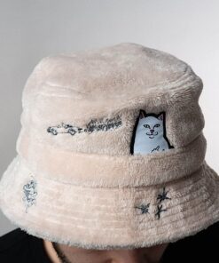 Sherpa Westside Bucket Hat Westside Graphic All Over Embroidery Embroidered Lord Nermal Flipping Off In Front
