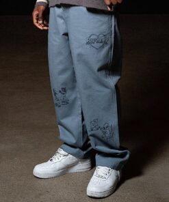 Westside 100% Cotton Wide Fit Pants Embroidered Westside Graphics All Over YKK Zipper Fly 4 Pockets Button Waist