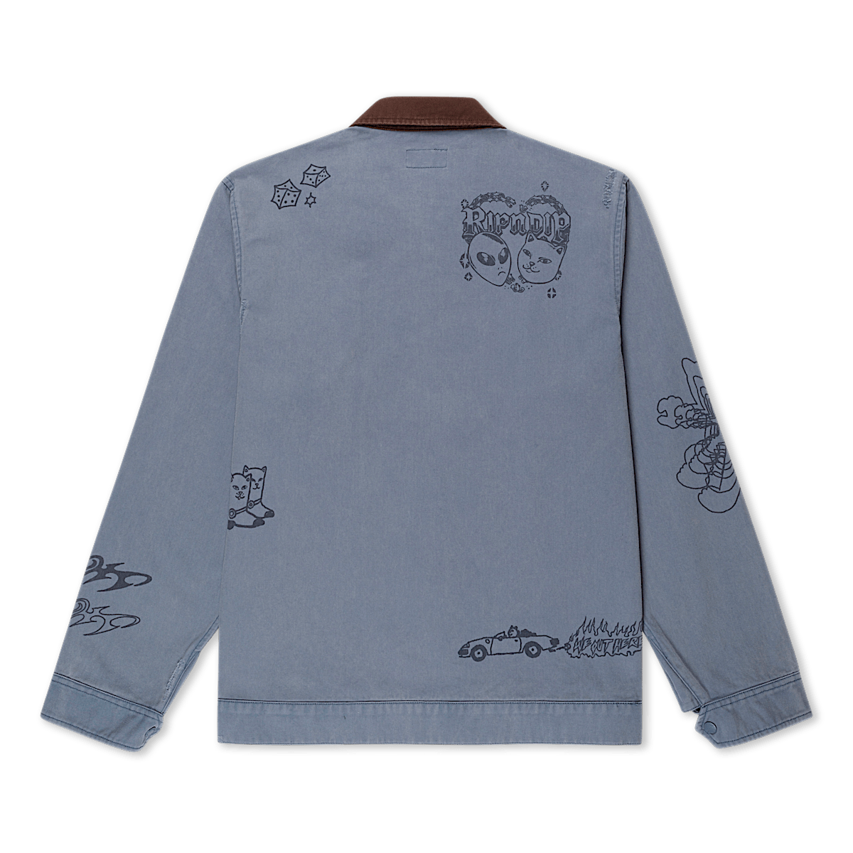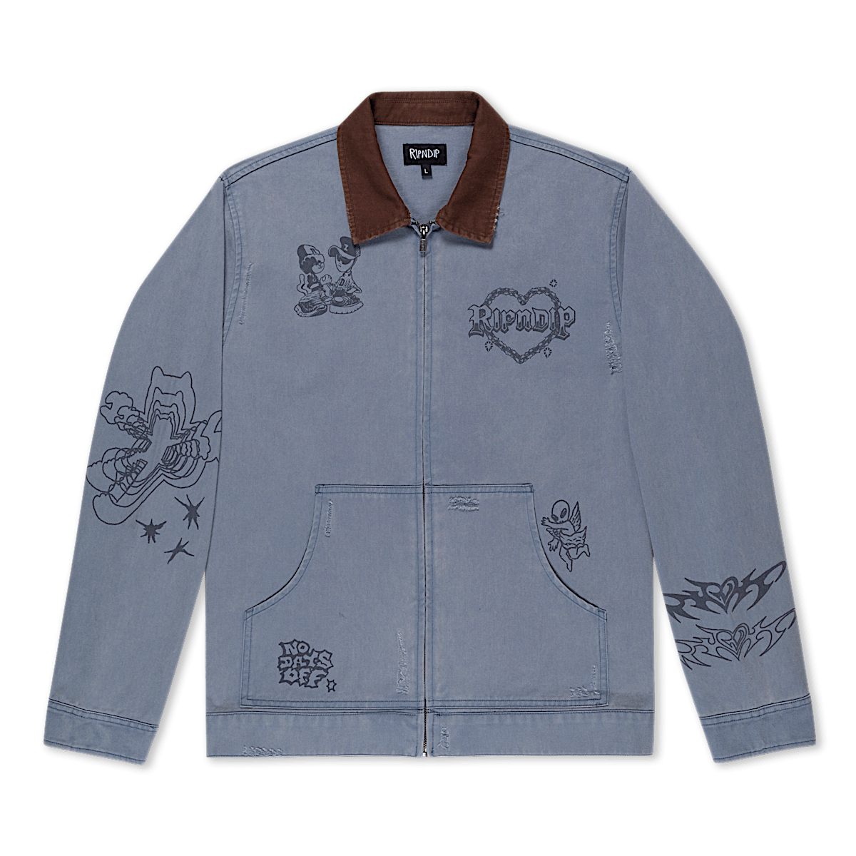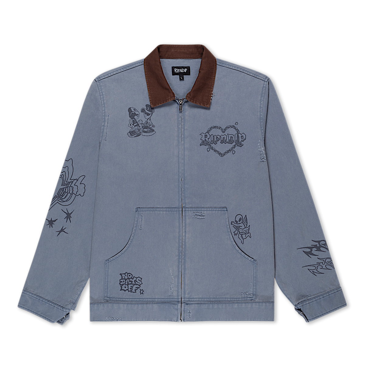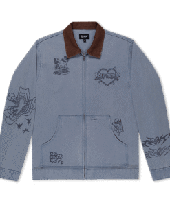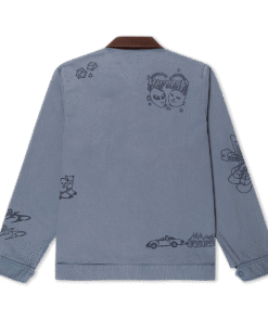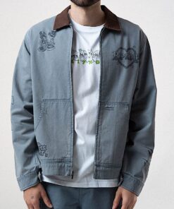 Westside Zip Up Work Jacket Custom Distressed Embellishments Westside Graphic Embroidered All Over 100% Woven Cotton Zip Up Jacket