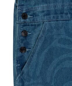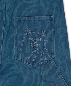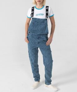Wilshire Denim All Over Print Overalls Embroidered Lord Nermal On Back Pocket Custom Branded Straps And Buttons